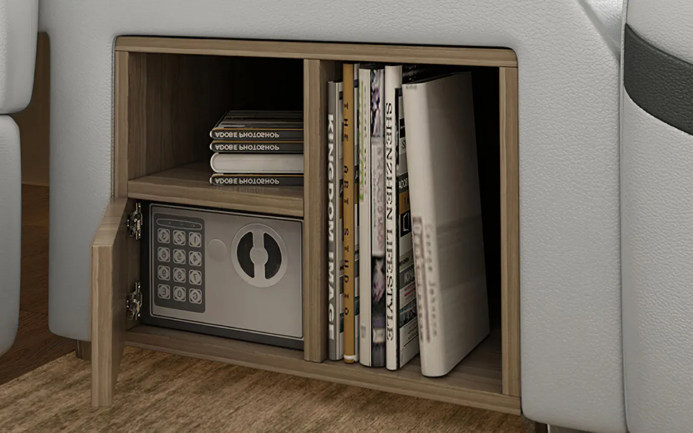 • Headboard Storage • Side Shelf • Bench Drawer and more This innovative bed is designed to provide ample storage space without compromising on comfort or style. With storage options built into the headboard, ottoman, side shelf, and drawers, you can say goodbye to clutter and hello to a clean and organized sleeping space. The Smart Bed storage system is the perfect choice for anyone looking to maximize their bedroom’s storage potential while maintaining a sleek and sophisticated look.